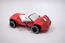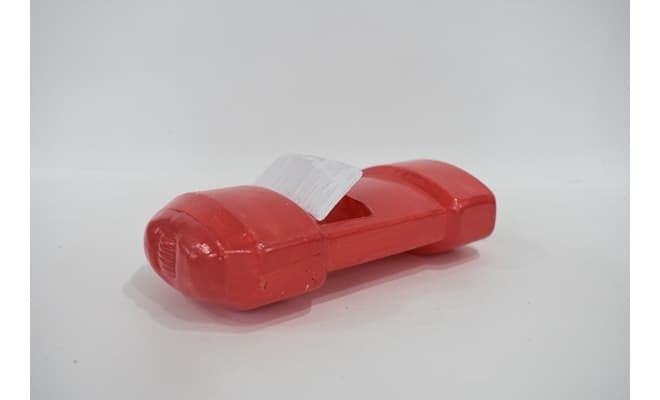 • Take 2 plastic pieces to make the head lights of the car. Paint them with Coral Red 66.