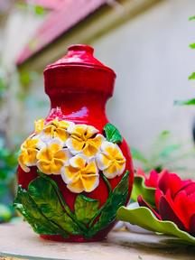 Fevicryl Mouldit, Fevicryl Acrylic Colours, Fine Art Brush, Earthen Pot, Varnish.