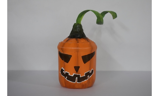 • Take the circular ring from the bottle to make the tendril of the pumpkin.