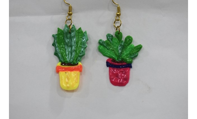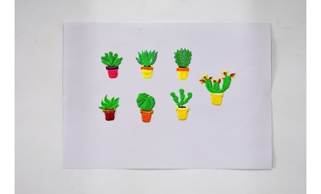 Fevicryl 3D Outliners Blue 702, Burnt Sienna 706, Neon Yellow, Neon Orange, Neon Pink, Neon Green, Fevicryl 3 D Outliners Pearl Green 304, Earring Attachments, OHP Sheet, A4 White Paper, Pencil.