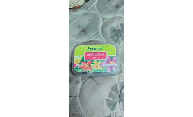 Fevicryl Acrylic Colours Sunflower Kit, Fine Art Brush, Old diya, Ceramic powder.