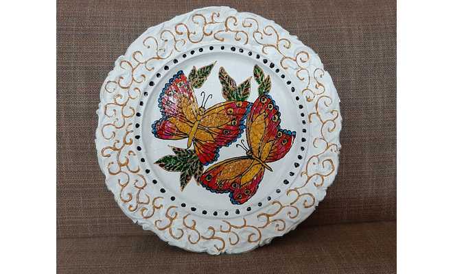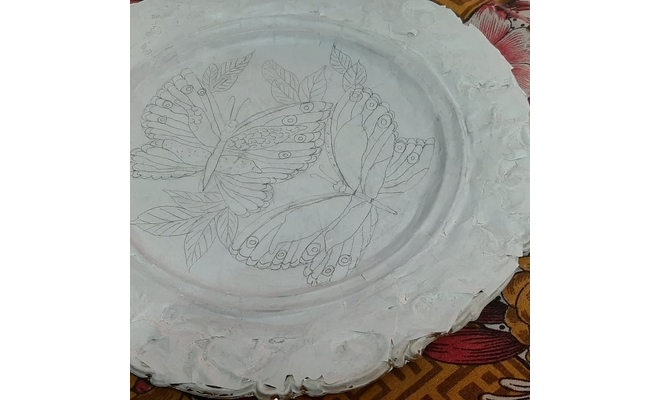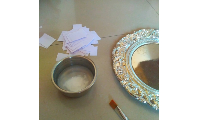 Fevicryl Water Based Glass Colour, Fevicryl 3D Outliners, Plate, Fevicol MR, Tissue papers.